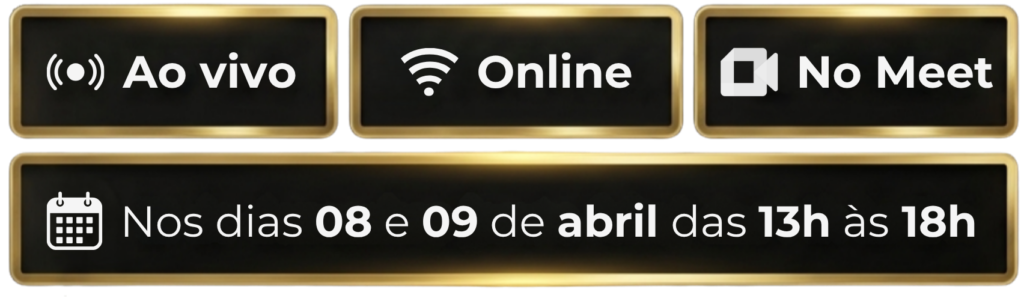 O curso será realizado ao vivo, proporcionando uma experiência interativa e dinâmica. Além disso, as aulas ficarão gravadas e disponíveis por 1 ano, para que você possa assistir e revisar quando quiser.